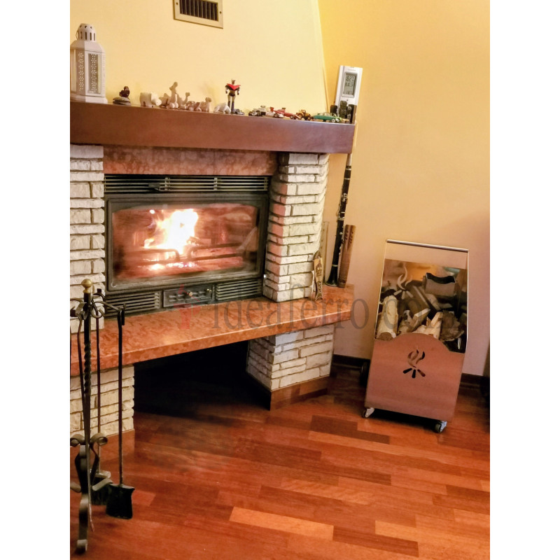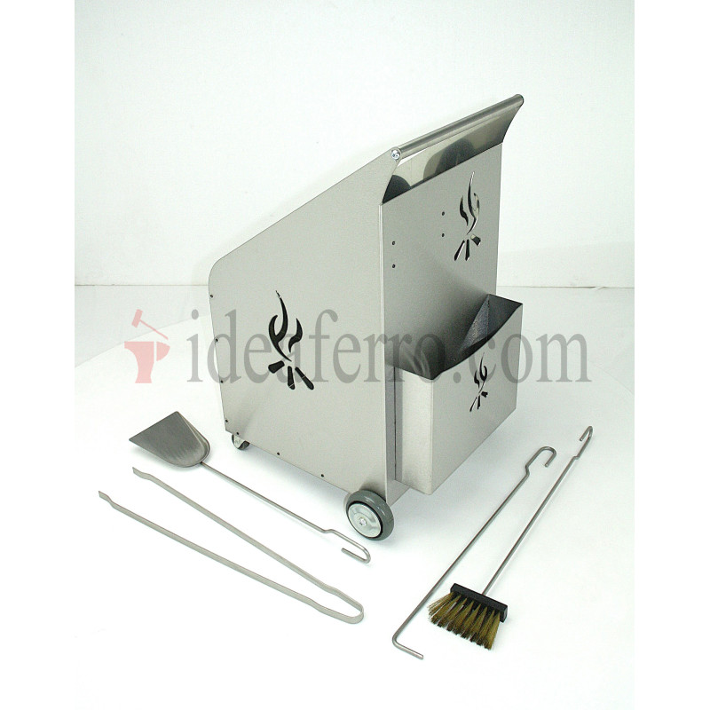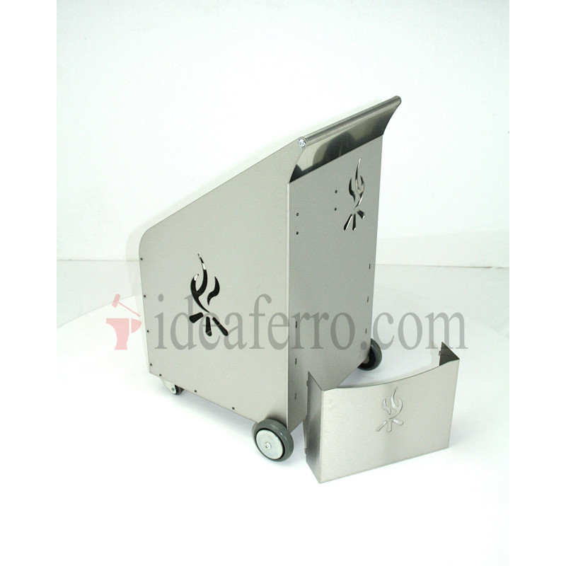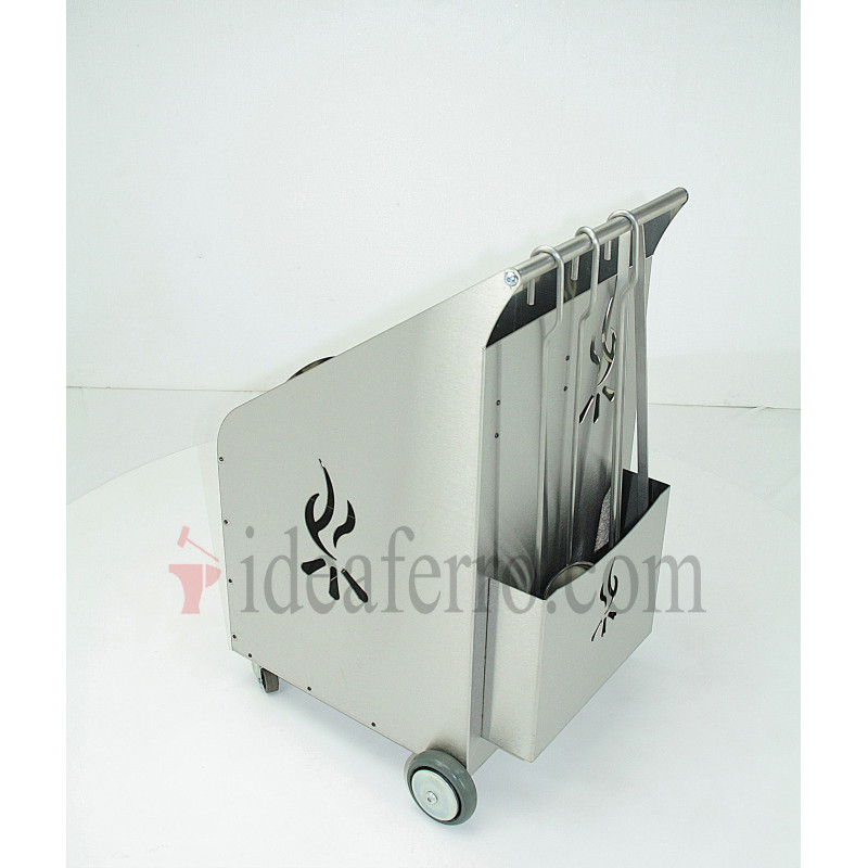 Porta legna con ruote e attrezzi acciaio inox