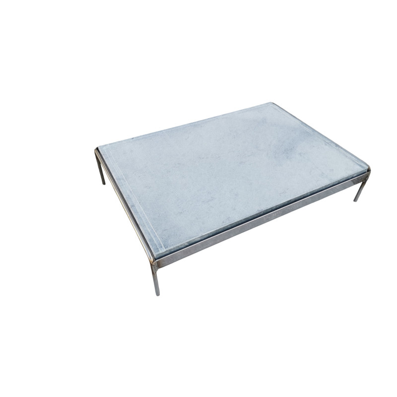 MATERIALE: Base e Gambe: Ferro verniciato / Scocca e telaio griglia: Acciaio inox 430. Ottimo coefficiente igienico e facilità di pulizia./ Griglia di cottura: Pietra ollare con telaio in acciaio inox 430