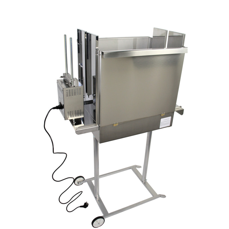 - Motorizzazione: Supporti laterali con motore elettrico a norma CEE, funzionante con alimentazione a 220V, per una rotazione uniforme del cestello.