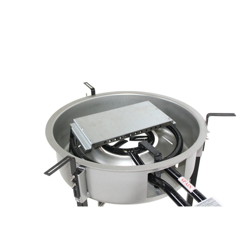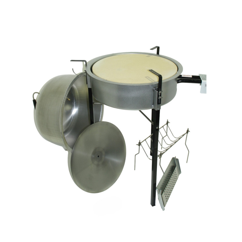 Questo barbecue, alimentato con a gas GPL, permette l'utilizzo in 4 modalità differenti, garantendo una cottura ottimale in ogni occasione. Nasce per la cottura della paella ma grazie alle migliorie apportate alla struttura e all'inserimento di particolari, si è trasformato in un vero e proprio barbecue combinato.
