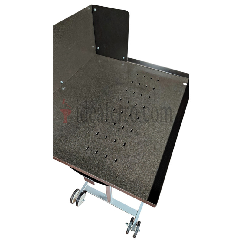 | L'ARTICOLO VIENE FORNITO COMPLETO DI BASE CON RUOTE, GAMBE DI SUPPORTO, PIANO IN LAMIERA, BRACIERE CON LAMIERINO PARASCINTILLE, RAMPINO TIRABRACE | |||||||||||