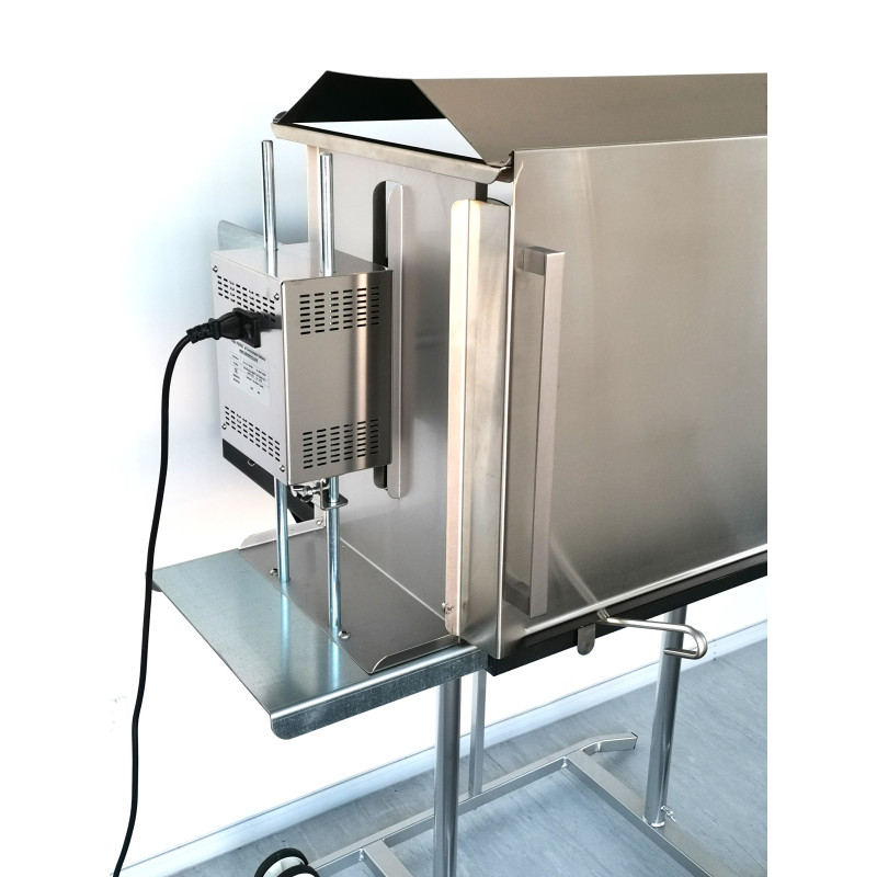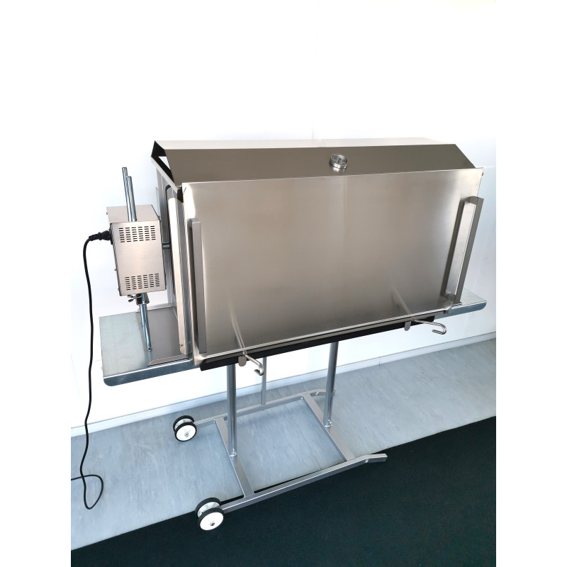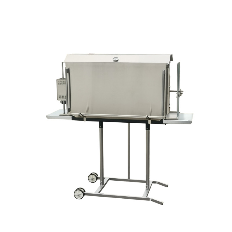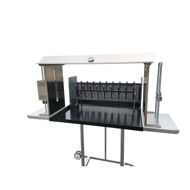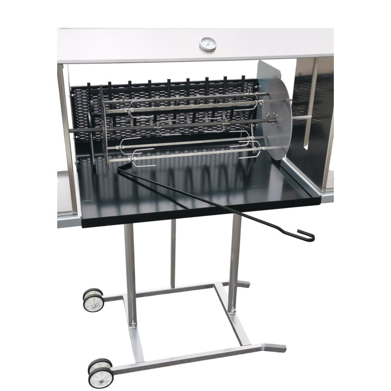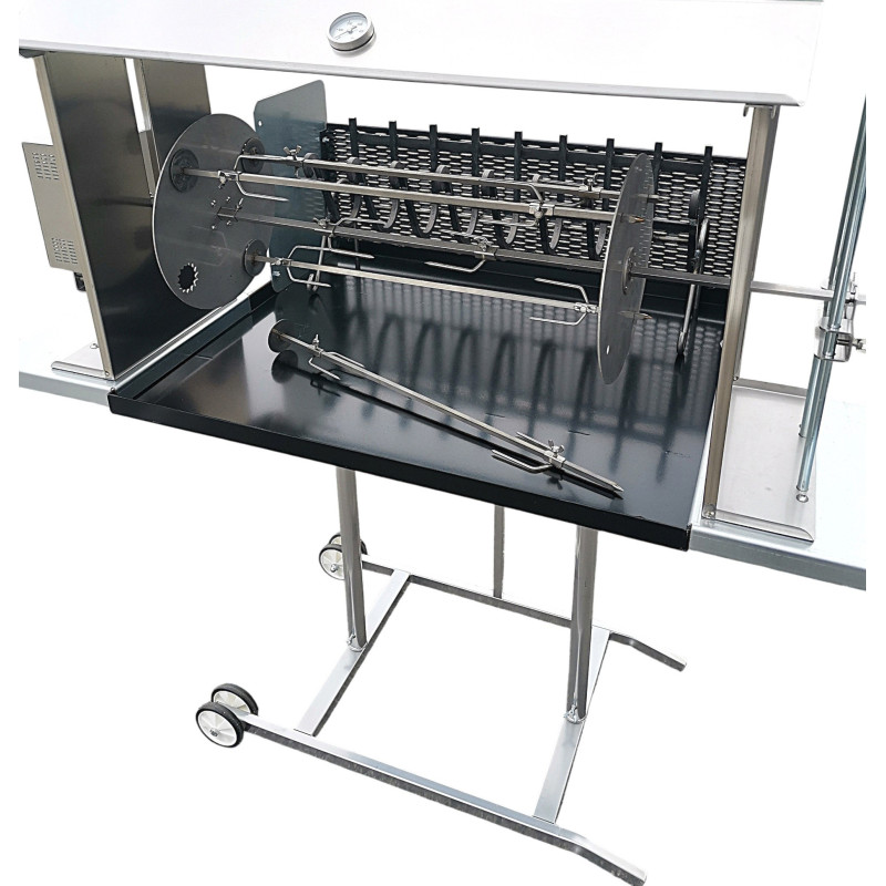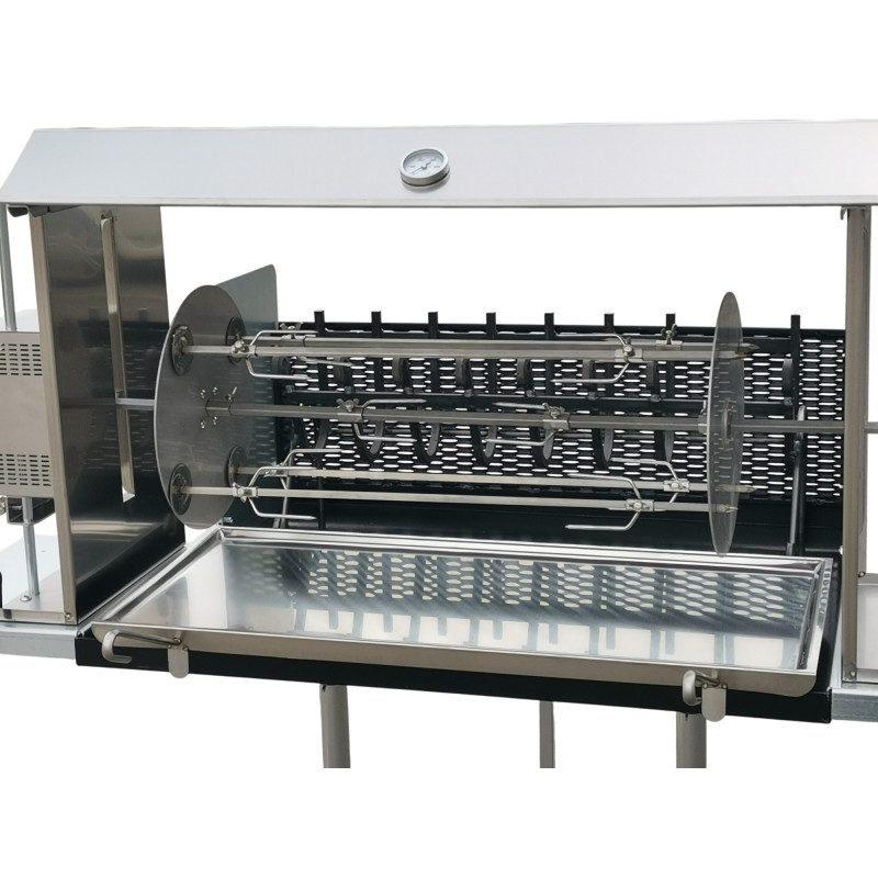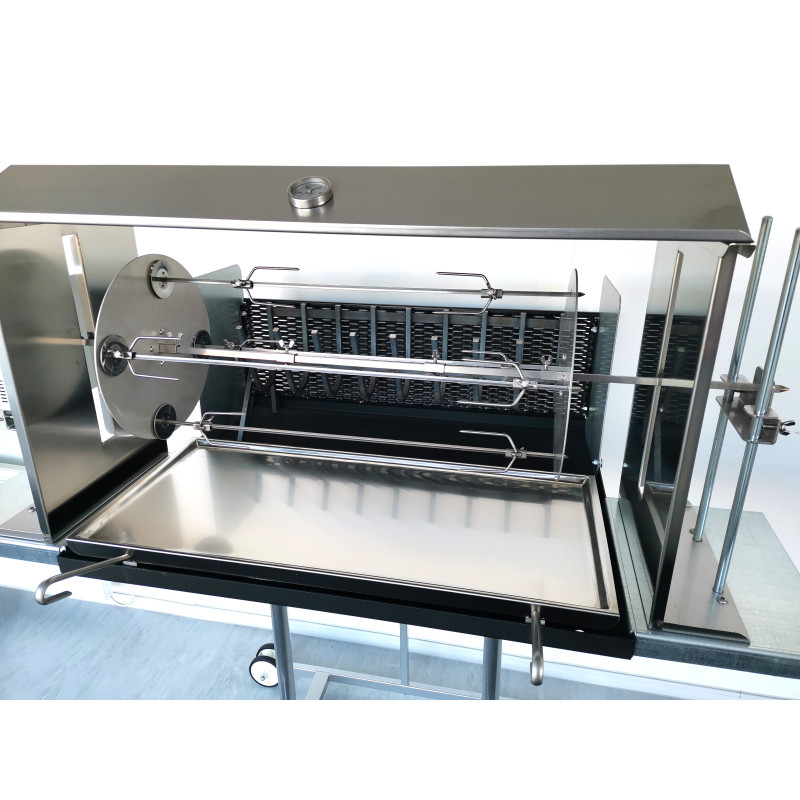 Barbecue Maxi con girarrosto elettrico e spiedo planetario, completo di cappottina, lamiera frontale con termometro e leccarda