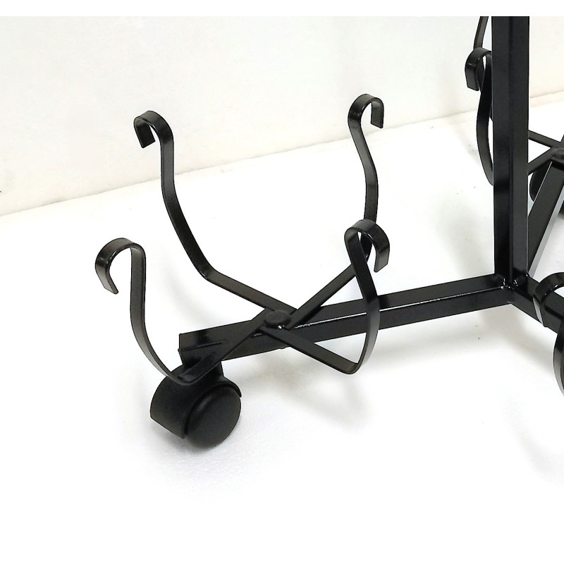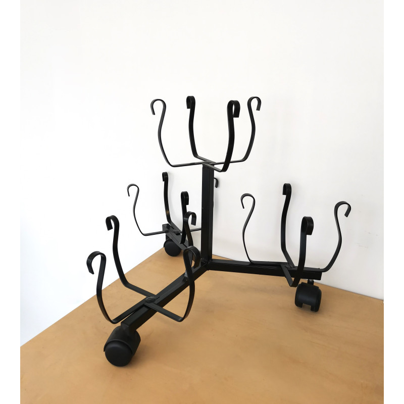 Portavaso con ruote per 4 vasi con lavorazione artistica. Grande praticità d'uso per questo prodotto grazie alla presenza delle tre ruote che permettono spostamenti con estrema facilità. Una simpatica soluzione per un portavasi dalla forma caratteristica che può contenere fino a 4 vasi e dotato di ruote per facilitarne lo spostamento. Portavaso dal bellissimo design, realizzato in metallo e verniciato a polveri, è idoneo per stare all’esterno ma anche all'interno, è dotato di 4 cestelli portapiante che posizionati ad altezze diverse, crea un effetto scenico. La struttura è facile da installare e molto pratica per facilitare lo spostamento nel caso di pulizia della pavimentazione. Il portavasi è adatto a qualsiasi tipo di ambiente, dal balcone al patio, in salotto, in corridoio o semplicemente per arredare il giardino. Made in Italy.
