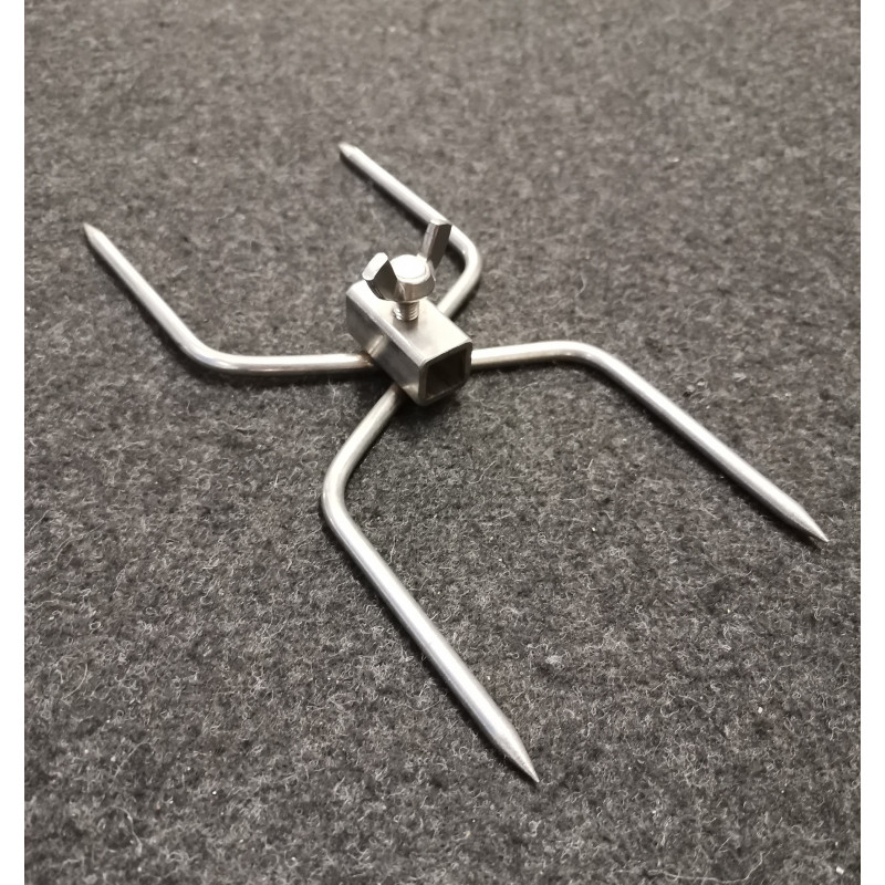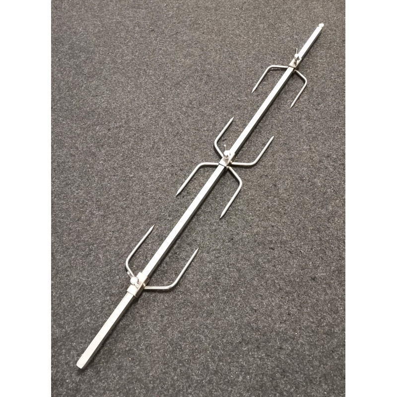 Gancio fermacarne a 2 PUNTE DOPPIO con boccola QUADRA - VENDUTO SINGOLARMENTE Ideale per inserire più pietanze nello stesso spiedo