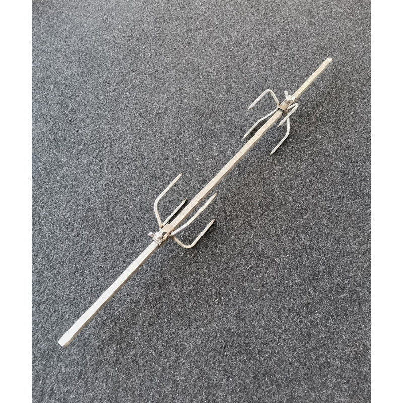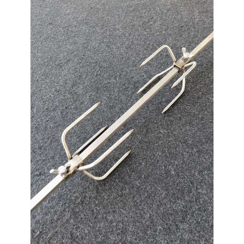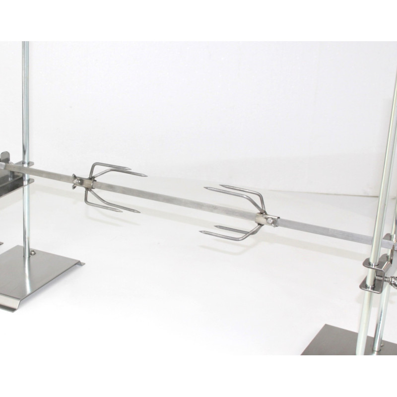 CARATTERISTICHE: Punte che permettono di infilzare agevolmente la carne e galletto di fissaggio per bloccarla allo spiedo.
