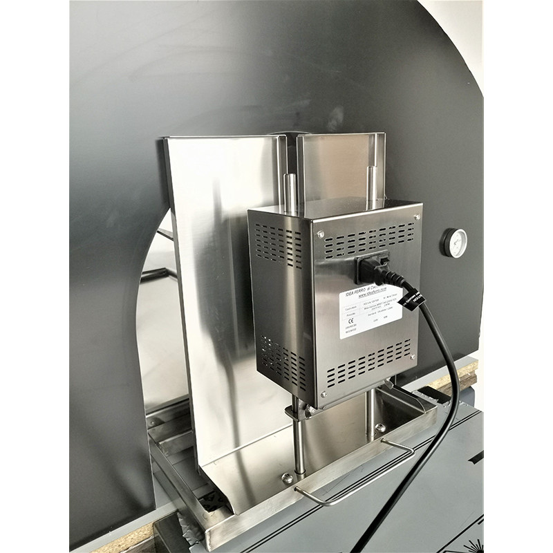 Ideale per pizzerie e ristoranti che vogliono utilizzare il forno a legna anche per la preparazione di più polli allo spiedo contemporaneamente