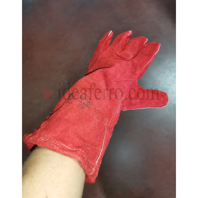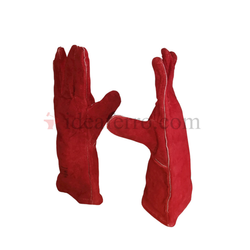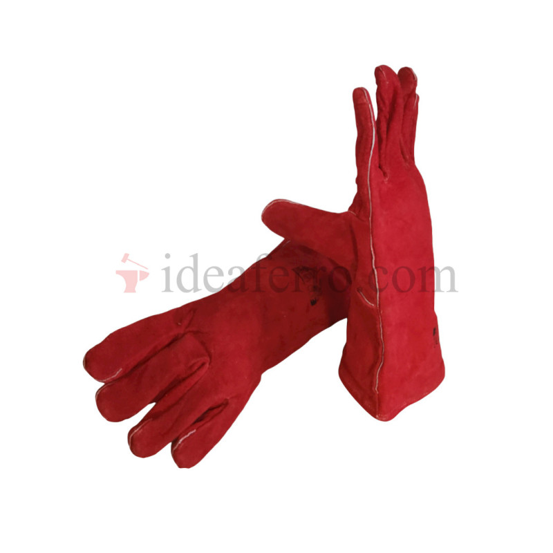 Guanti rossi: guanti da saldatore che NON permettono l'esposizione al fuoco vivo ma proteggono le mani e gli avambracci dal calore del fuoco. Permettono di maneggiare oggetti caldi per periodi di tempo non prolungati. I guanti rossi non sono idonei a lavaggio in lavatrice, si possono rimuovere eventuali detriti con una spazzola e un panno umido.