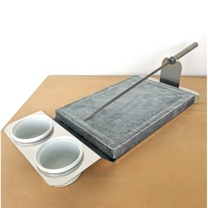 Pietra ollare da tavola con ciotole porta salsa e spiedino